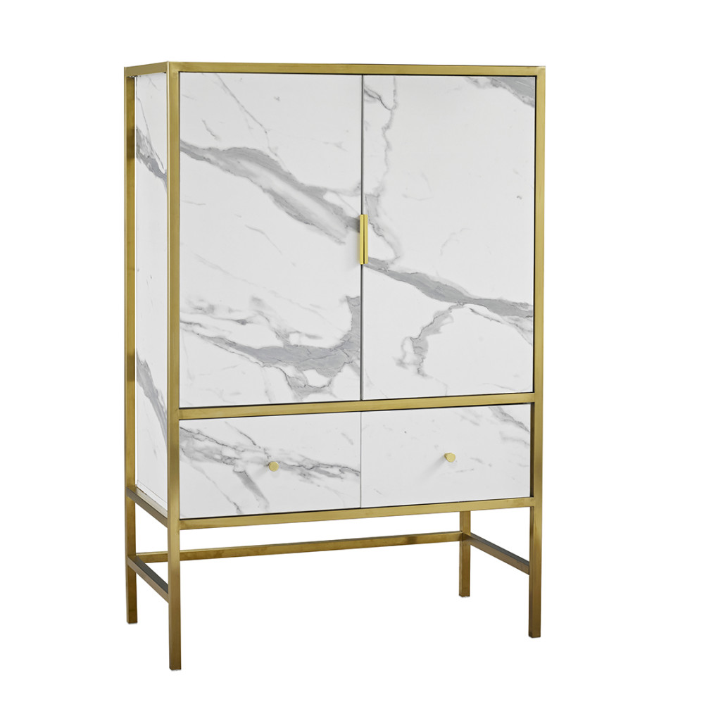 The Monaco wine cocktail cabinet will be the new piece de resistance of your living space! Add that wow factor when entertaining guests, or just yourselves, with this luxurious cabinet that will house all your entertaining needs. Removable shelves to accommodate your storage requirements. Available in white or black faux marble with a sleek gold frame, this piece is an easy, glamourous, yet affordable update for your home.