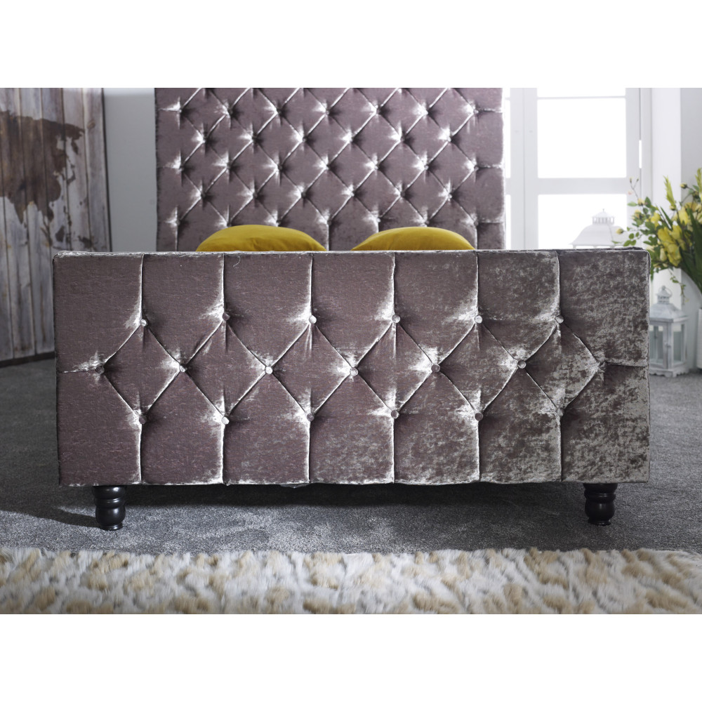 design. The deep buttoned headboard gives a