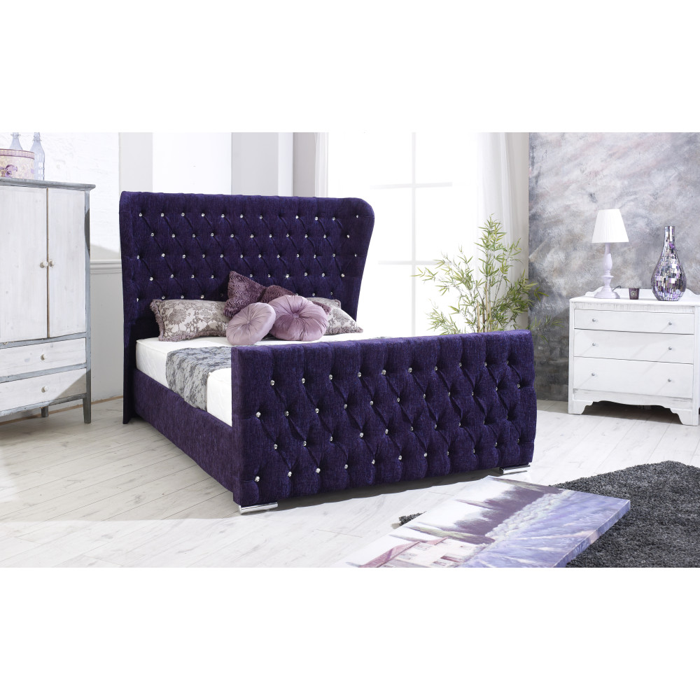 Handmade beautifully crafted Wing Sleigh Bed in Purple